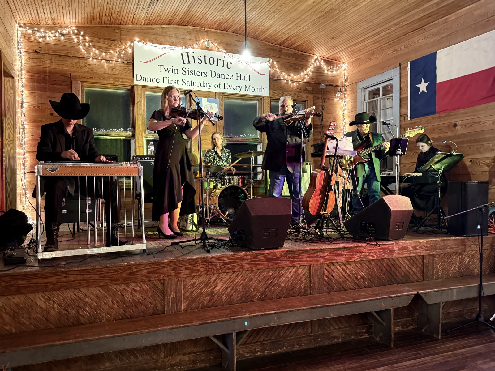 Where: Twin Sisters Dance Hall. 6720 Hwy 281 South Blanco, Texas 78606 (6 miles SOUTH of Blanco).   Twin Sisters is among the oldest and most cherished dance halls in Texas that is still in operation. This unique venue, run entirely by volunteers, is part of the Texas Dance Hall Preservation movement, making it the perfect setting for a night celebrating both our cultural heritage and our natural resources.